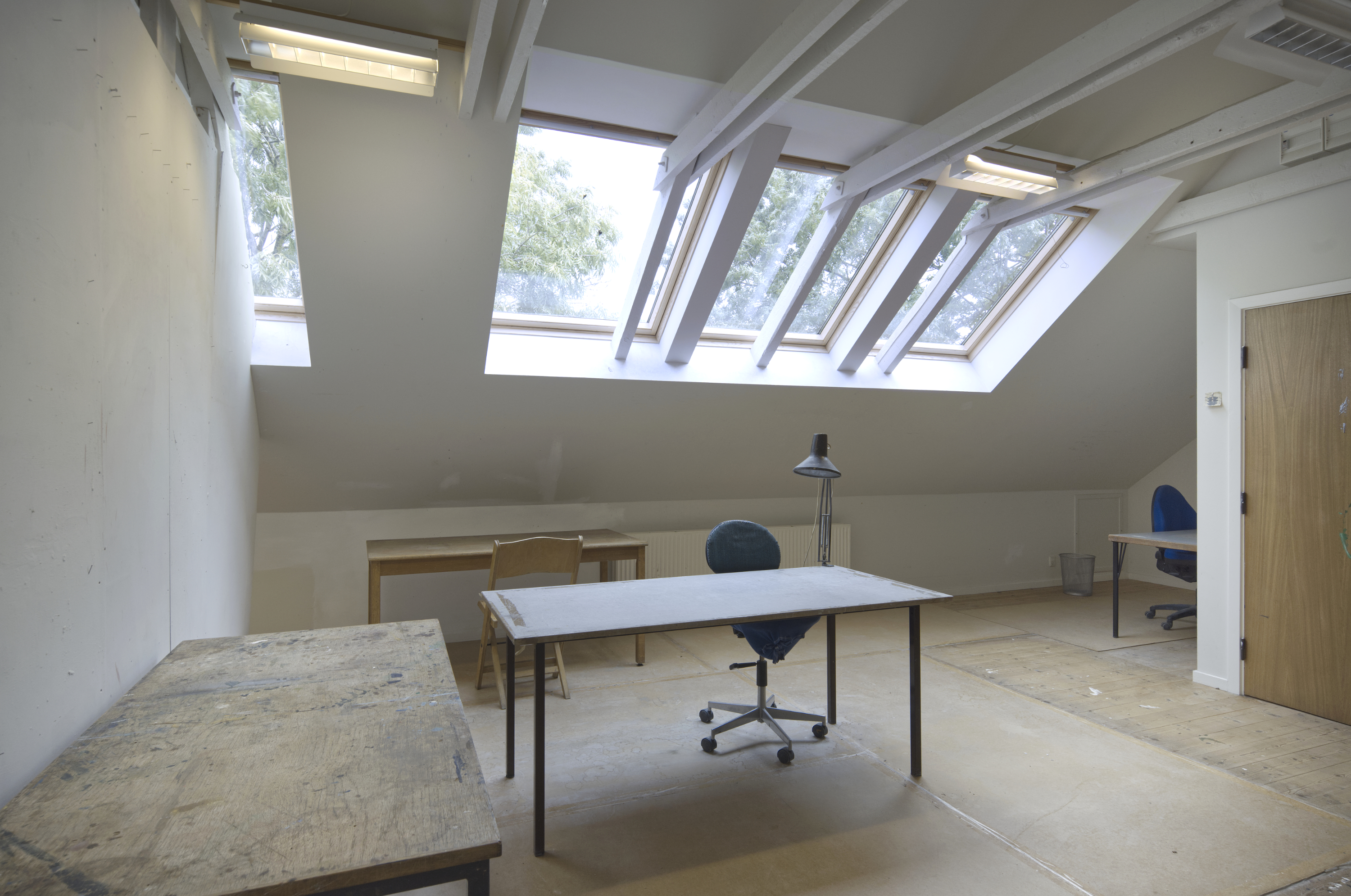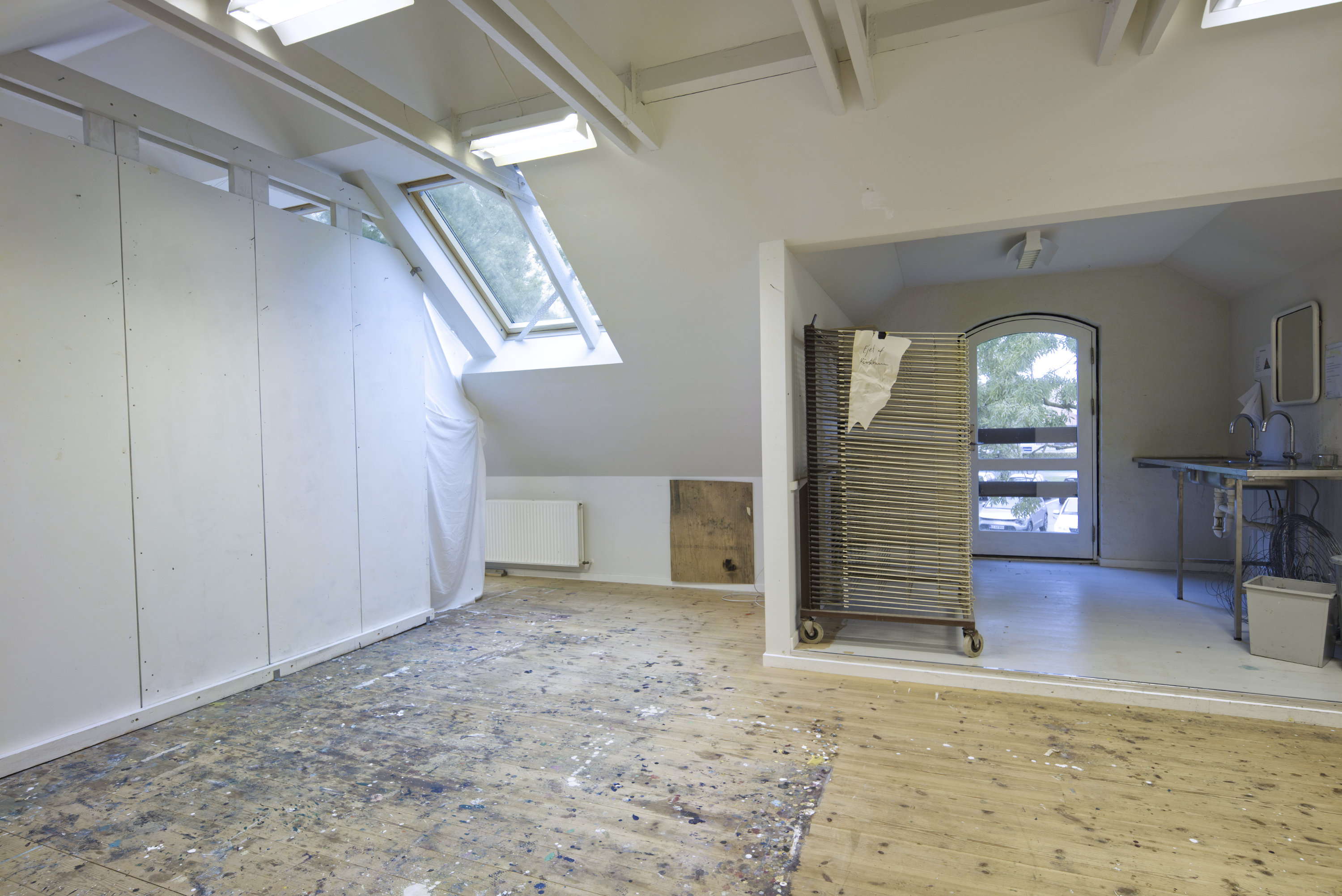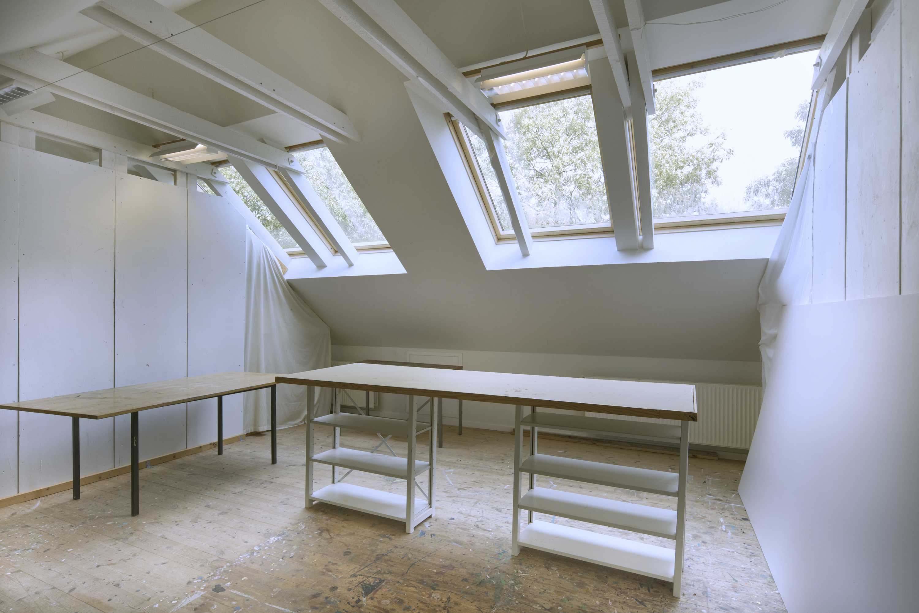 Åbent Arbejdsrum, der kan lejes i 3 måneder af gangen. Et rum, der er velegnet til kortere projektperioder på Hollufgård Værksteder for Kunst og Kunsthåndværk.
