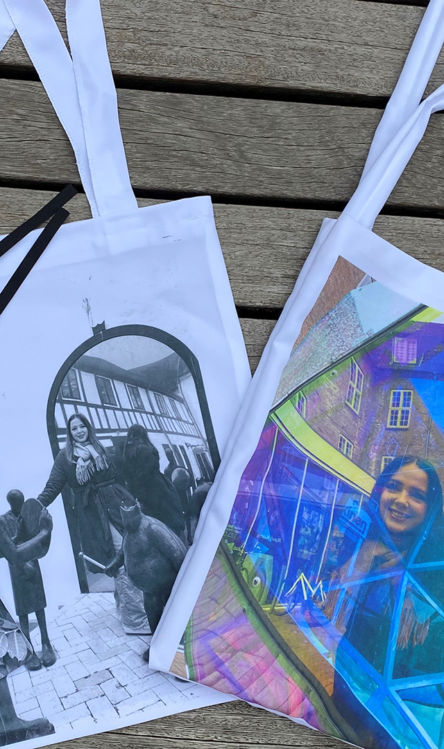 Med en lille fotoøvelse, får I chancen for at vise, hvem I er. Vi tager unikke billeder af hinanden, og med varmetryk får vi omsat billederne på stof.